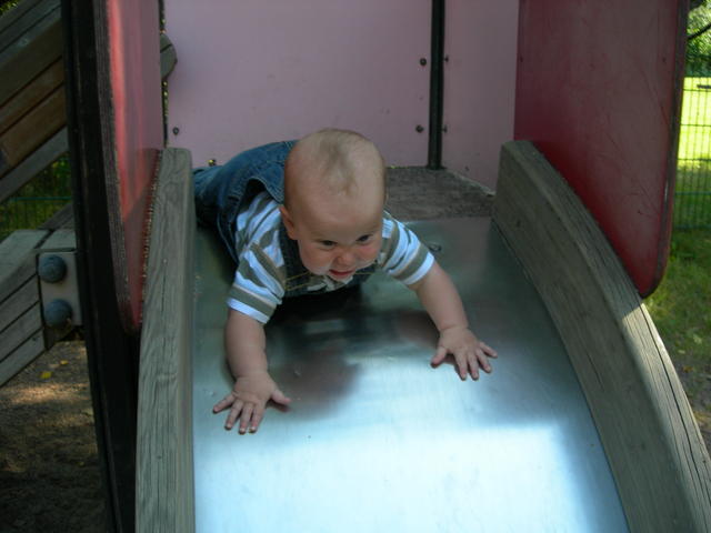 На фотке видно, что и другие дети тонькиного возраста по площадке ползают. Не думайте, что это я такая мамаша сумашедшая. Правда, площадки тут огороженные, бездомных кошек и собак нет. Для выгула собак тоже отдельные площадки. А чтобы кто-то курл на детской площадке - это вообще нонсенс. Поэтому если Тоньке удается себе иногда камень в рот засунуть, то я особо не переживаю