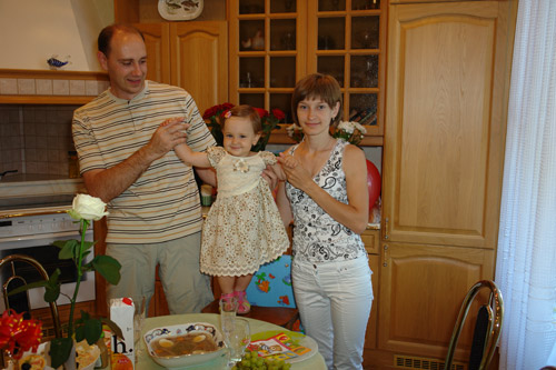 ),t.e. s vityanutoy vpered rukoy,rodilas moya lubimaya malyavochka!!!![]() ![]() ![]() Kak etot god proletel - sami znayete-nezametno Moralniy nastroy bivaet samiy razniy: ot takogo![]() do takogo![]() ; no posle togo, kak moya 'puhlyatina'(rost71sm,ves-okolo 9kg-eto dlya statistiki )podpolzet s nevinnimi glazkami da priniknet golovkoy k materinskoy obvisshey grudi,tak ya tayu...![]() Nu nash spisok dostijeniy: nakones popolzli i daje dovolno bistro ![]() stoim bez podderjki po neskolko sekund ![]() bistro hodim,derjas za odin pales ![]() igraet v pryatki, dogonyalki ![]() lubit razbrasivat,krushit i lomat, ![]() sobirat(v tom chisle i piramidki) ne lubit ![]() voobshe lubit ekstrim v vide podbrasivaniy, pugalok,skorostnoy yezdi na velike s bratom ![]() segodnya nauchilas govorit 2 novih zvuka Ю и Ё. Perviy ispolzuyet,esli nado yey chto to podat. Krikom: ey,you!-ukazivaet palchikom chto yey nado, a vtoroy nachala ispolzovat vmesto ay-ay-ay ![]() ochen lubit muziku i reklami - viuchila ves zdeshniy assortiment. Nu vot,chto smogla pripomnit ; svejiye foto viloju posle prazdnovaniy... |