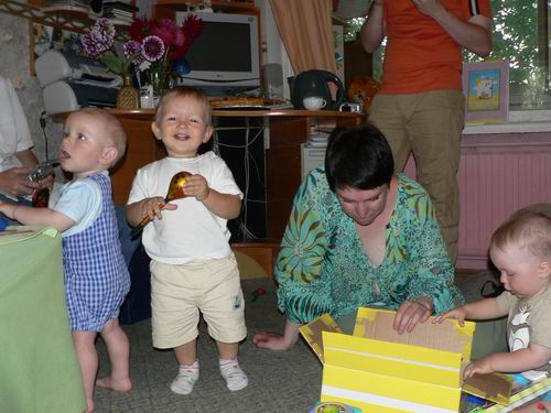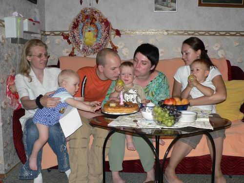 Приветик, у меня тут сутки интернета не было и я не вывесила фотки с дня рождения и не только !! Вот наши отчетики- во-первых наш День рождения! Спасибо еще раз Юленьке и Илюше- было классно! Вообще Илюша очень вырос и стал галантен- и еще он научил нашего Олежика вставать самостоятельно на ножки- так что надо тусоваться вместе-дитяшки всему сами научатся!. У нас был насыщенный денек- днем детское день рождения, вечером дед и родственники ,так что я вообще после дня рождения на сутки выпала из жизни! Олежику надарили всяких классных игрух, сейчас самый любимый это телефон который Юля и Илюша подарили! Так что приходите к нам играть- детская еще конечно не до конца- но уже готова к приему малышей!