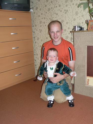 А вот и фотки это наш братик крестный с подарком- развивающим ведром- я сделала его сама для него нам годик вот какой наш сынок- маленький принц друзья веселяться два именниника джентельмена |