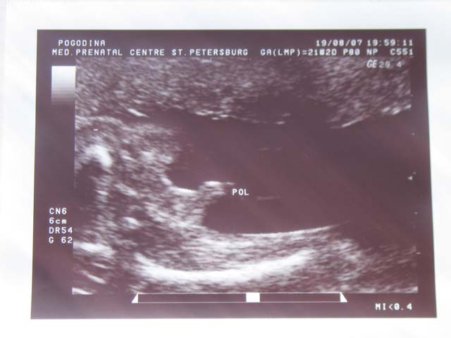 Урра! Ура, ура, ура!!!!! У нас будет мальчик! МАЛЬЧИК!!! Мы так хотели,чтобы первым был мальчик, а младшенькой дочка. Вчера были на Балканской пл., д.5, делали УЗИ с записью на диск. Заплатили 2600, но столько удовольствия получили! Я очень волновалась все ли в порядке, но врач все органы проверил, все показал, по срокам все нормально и все на месте, и у него такое личико в профиль! А пол.... Я чес гря уже думала, у нас девочка, уже почти по имени к ней обращалась, все вокруг пророчили девчонку, и мама так внучку хотела (хотя говорит теперь, что ей все равно, главное, что здоровенький). А врач там как-то его повернул (ну как мне показалось) , с боку легонько подтолкнул, видимо чтоб он перевернулся в нужный ракурс, и на экрате видим отросток, вполне серьезный такой, врач грит: ну есть сомнения у кого-нить? Я вот сейчас смотрю на фото - внатуре похоже, но уж больно конкретно, даже подозрительно как-то, я думала, у малышей все намного меньше, фсмысле половых органов... Вот и не знаю, верить ли, а то очч хоцца уже конкретики и обращаться к малышу по имени, и знать, кто там живет, чтобы одежку сообтветствующую подбирать потом... Врач то своим видом выражал полнейшую уверенность. Вот... У нас щас 22 неделя. Вес малыша 470 гр., рост 31 см. Он уже настоящий полноценный человечек! Мы очень рады!