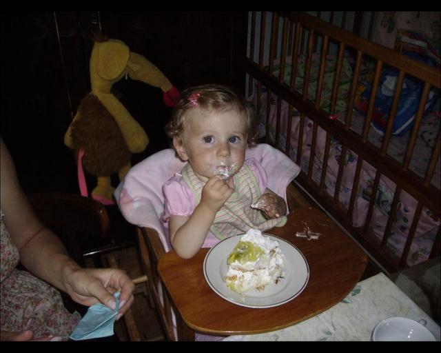 Я перед покормила ее едой, потом еще в торте дали чуть поковыряться.