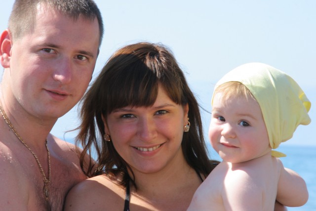 Семья гармоничная,красивая!Больше всего понра фотка,где Катюша идет по пляжу,а ручки как у цыпленка! Прелесть!
