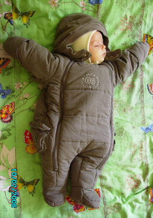 не, пока осенний носим, у нас все комбезы из серии осень-зима, на морозы будет + меховой мешок