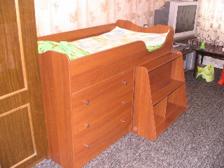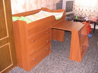 Высота кровати с бортами 1 метр, высота спального места 75 см. само спальное место 80х160 см. под столик отлично влазеют пластикоывые ящики с игрушками.
