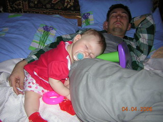 А я вчера сижу на форуме Вас читаю, а муж с Викусёной играет. Потом слышу какая-то тишина, смотрю а все уже спят, а Викуся сидя: