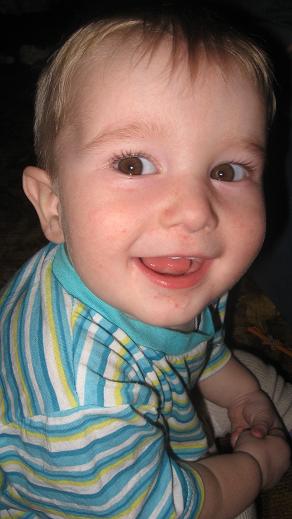а мы вчера масика постригли !!! в парикмахерской такой серьезный сидел даже не крутился правда очень коротко получилось...мне не очень нравится...а еще у нас новый зуб, причем уже довольно большой! а мы только вчера его заметили у нас 7 зубов!и вообще мы давно не показывались! |