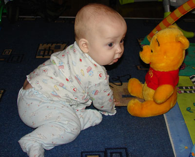 Мой вперед больше полуметра еще не проползал, хотя я его и учу, только назад. А остеопат нам сказал, что назад - это, конечно, хорошо, но пора б уже и вперед - ребенок готов. А стоит только, если мама поставит, а мама вредная и надолго не поставит Да и сидит - одно название - с поддержкой на обе руки. Медведь сидит не в пример лучше![]() |