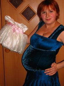 Вот наш пуз в мамином вечернем платье и платье для самого пуза ![]() Слишком румяная - это потому, что фотографировалась с набегами на кухню: жарила, парила и кипятила ![]() |