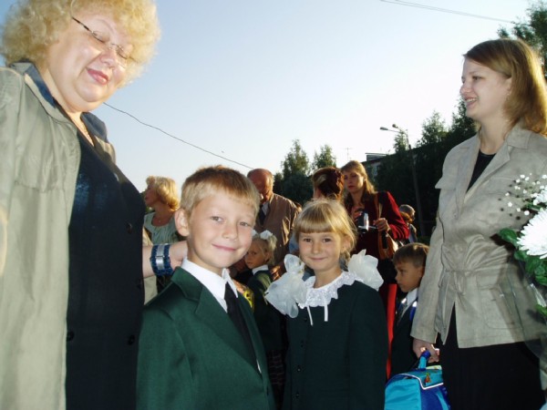 У Маши были самые-самые банальные огромнющие банты (они специально к первому сентября продаются - на резиночках). Я когда друзьям-родственникам разослала фотографии - все нас хвалили за приверженность традициям и умилялись