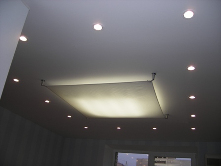 Шкаф в нише в гостевом санузле и кровать. Паруса светильники обещала показать - вот.