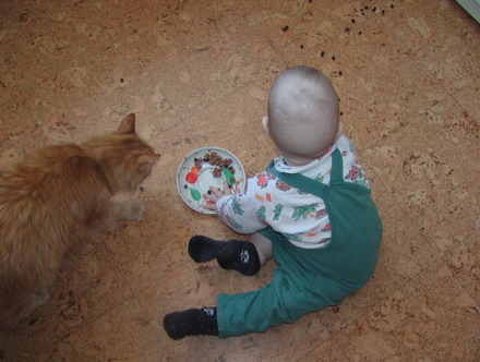 Мы сегодня попытались поесть из миски кошки, но мама не дала ![]() |