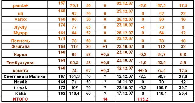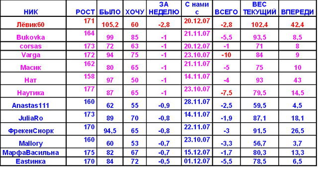 Мась, привет. Мои поздравления! На следующей неделе цель одна - не прибавить ![]() |