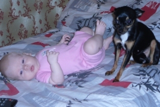 кот Крыса Кошка Мурка(на зиму) А летом был попугай,но улетел. Мы тоже знаем много команд,ходит с котом в один туалет,спит с нами,а когда родилась дочка сначала её боялась,но в тихаря обнюхивала.Потом стала утаскивать её игрушки(чужие же интересней),а когда Дарина плачет а я в другом месте начинает завывать.Вот.на первой фото ей 2 месяца |