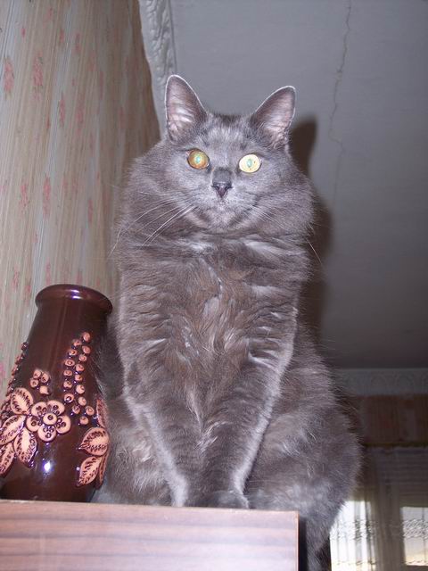 Светлый - Степик (Стенька ), племянник маминого кота Федора. Темный - пришелец, приехал за нами в гости на 21 этаж. Жил в подъезде. На объявление откликнулась хозяйка, аж через месяц и тут же отказалась. Так как пепельного цвета - то Феникс, а попросту - Фенечка. А это кот Федор. Ему 16 лет. |