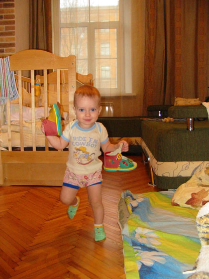 Днем мы с 10 мес. спим 1 сон. Юля, Сашка просто звезда, это точно, обхохочешься ![]() Девчонки, а у вас детки нормлаьно себя ведут. у Ники ужасно испортился характер. Чуть что не по ее - орет, да так, что у меня уши вянут, диапазон от баса до кошачьего визга, ногами топает и руками как мельница машет. А если на руки взять пытаюсь,то она вся выгибается и извивается. Как только слышит слово "нельзя" или "не надо", сразу истерика... жуть короче. Где же мой спокойный ангелочек?.. ![]() Вот такая хулиганка: бегом на приступ мамы!!! |