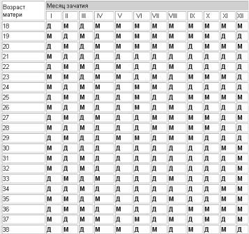 я перевела тестов 20 за 6 дней, везде полоски, сегодня утром жирная была-)(вчера тоесть) Осталось в наличии 7тестов, на последующюю неделю-) Вот такую табличку нашла-) кто может получится-) М-мальчик, Д-соотвественно девочка-) так что по таблице у многих выходят девахи-) будем плодить невест?))) |