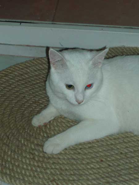 У моей подружки дома тоже живёт чисто белая гладкошерстная кошка, уж как она с ней носится... Как с младенцем... |