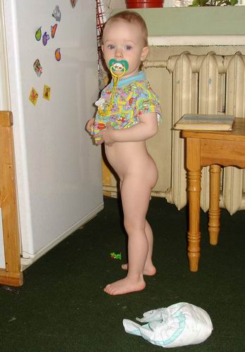 на второй, прихожу на кухню, стоит моя маша с голой попой, памперс сняла, и магнитеки на холодильнике гоняет ![]() |