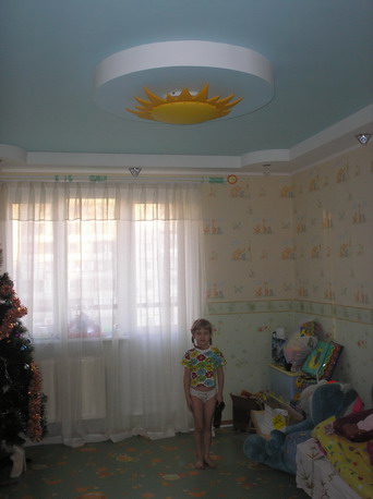 Вот наша детская, но она не доделана, на потолке еще облачка подразумеваются нарисованные и флюресцентные звезды