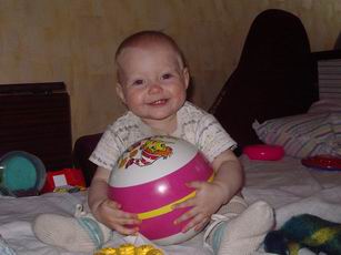 Кира научилась разбирать и собирать пирамидку. Вкладывает и вытаскивает формочки, может показать части тела на игрушках, катает машинки, кидает, пинает, хватает мячики, умеет складывать вещи в коробку. Но чаще все бросает, вытаскивает, выкидывает. Каждый раз сопровождая комментарием: "БУХ!". Ползает на четвереньках наперегонки. Любит обниматься и целоваться. Особенно любит смотреться в зеркало, в полировку шкафа, в стекло плиты - везде, где есть отражение. Из последних игр - научилась прятаться, проползать под стулом, нагибая голову. Встаем сами попкой домиком. Вообще, дома ходит сама от дивана до стенки. С перерывми может сделать шагов 10.