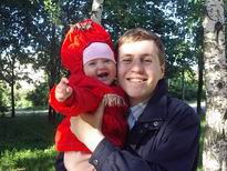 Кушаем что попало, очень любим кукурузные палочки, которыми папа балует. Кашу едим "взрослую" на молоке, на обед овощи+мясо, иногда баночное, йогурты питьевые, веллинг, соки, фрукты-ягоды. В этом месяце у Егора появилось 2 верхних зуба, итого у него их 3, научился вставать у опоры, периодически эту опору отпускает и пару секунд стоит. Очень быстро на четвереньках бегает за котом с боевым кличем. Бедный кот скоро лишится последней шерсти. Пока в городе гуляем целый день. В понедельник едем на море!!!! Игрушки не любит. Любимая игрушка - свои кеды. Говорит только слогами, в основном бу-бу-бу Целует только маму Очень любит ездить на маршрутках больших и трогать за попу стоящих людей. Не пропускает ни одной юбки, как девушку увидит, особенно в короткой юбке, так готов шею вивихнуть, смотря на нее Я серьезно, мы все уже ржет над ним. Вес 9800, все никак нам рубеж в 10 кг не пройти.