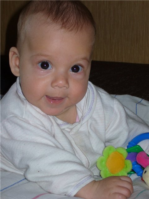 ![]() Шурка родилась 19 января в Крещение, 3700, 53 см. Сейчас мы 6500 и 63см. Нам ставят гиперактивность, может поэтому мы очень быстро развиваемся: переворачивемся с 2,5 всячески, сейчас ползаем на животе и пытаемся сидеть. ![]() У нас уже два зуба и мы кусаемся!!! ![]() Хотелось узнать, какой темперамент у других козерожек? Мы просто неуправляемые и очень обидчивые... |