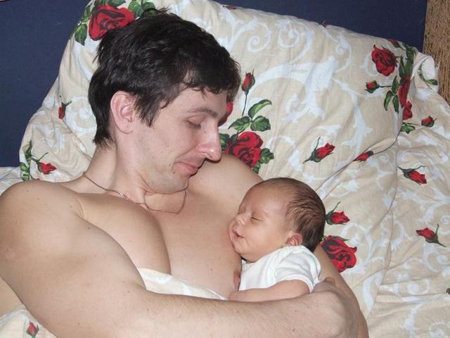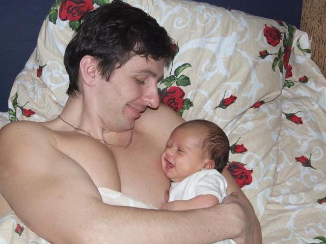 вот наш Андрюша)) кайфует на папе))))))1 месяц(только что)