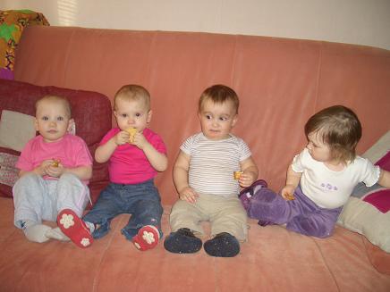 Первым появился мальчик - маленький мужичок Глеб и с порога сразил "Собака" на Хильду, вот что значит дети-погодки, а потом не заставили себя ждать красотки Манюня и Дашуня и их мамочки. |