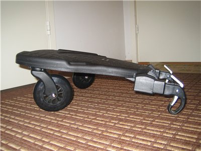 у меня вот такая. крепиться она к перекладине коляски рядом с тормозами. колеса крутятся 360 градусов. фото спульчика попробую поискать попозже. ребенок еще не спит