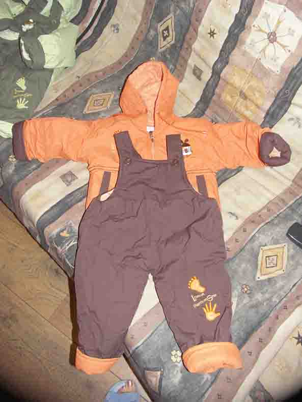 Шаговый у штанов 29 см, Длина куртки 35 см, Длина рукава куртки с плечом 38,5 см. Все подворачивается. На толстом синтепоне. Мы носили зимой, но когда очень (после -10) холодно мы не гуляли. |