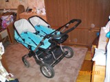 Коляска City Twin (Amazin Agua) Европейская коляска для двойни 2 в 1. Две люльки с ручкой для переноски, два сидячих блока, алюминиевая рама, большие задние колеса на подшипниках, очень легкая и компактная, насос, два дождевика и москитные сетки в комплекте. Различные варианты использования (люлька+люлька, кресло+кресло), в том числе и для погодков (кресло+люлька) .