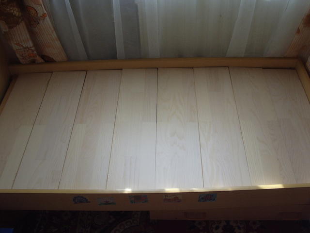 Отдам (самовывоз) кроватку для детсадовца (где-то с 3 до 7 лет). Размеры: 165*85см, кокосовый матрасик. Когда-то давно у решетки сломалось 2 перекладины, и мы заложили всю решетку ламинатом (см.фото). При желании можно эти перекладины очень просто заменить. Внизу - 2 ящика для белья. Пишите в личку. Находится на пр.Художников (м."Проспект Просвещения") Последний раз редактировалось Анхель, 25-09-2007 в 11:37. |