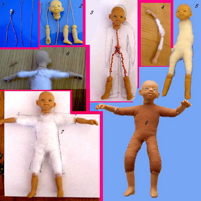 ![]() Итак, сначала делаем эскиз для пропорций (у взрослой куклы голова должна составлять 1/7 ее высоты, у куклы-ребенка 1/5 - 1/6) Делаем каркас тельца из проволоки и пока откладываем его. Берем фольгу, мнем ее, образуя шарик (будущую голову), затылочную часть делаем выпуклой, лицевую плоской. Штыречек из проволоки вставляем в шарик, типо шеи. Этой проволочкой потом будем крепить голову к туловищу. При работе с паперклеем надо помнить, что руки всегда должны быть чистыми ! Можно использовать влажные салфетки. Материал этот быстро сохнет на воздухе, поэтому те части, которые ждут своей очереди, должны находиться в пакетике, а форму, с которой работаете, смачивайте немного водой. Не переборщите! Иначе паперклей раскиснет ! Если такое случится, не огорчайтесь. Он через несколько минут подсохнет и будет в «форме» . Итак, на шарик кладем пласт паперклея (3мм), выравниваем, это основа. Все последующие детали: лоб,нос, глаза, губы,уши, щеки, подбородок лепим на слегка смоченный паперклей, иначе не пристанет . Выглаживаем стеком или просто пальцами. Для симметричности советую делать шарик и разрезать его пополам, допустим для щек. Для носа делаем «морковку» и прикрепляем тонкой стороной вверх. Для удобства можно взять фото человека в профиль и анфас или самой чаще смотреться в зеркало. И полезно, и приятно. Иногда..![]() ![]() Ну, пробуйте пока голову вылепить, если будут вопросы – спрашивайте! Я прикреплю картинку создания куклы, правда там пластик другой, но в принципе все одно и тоже почти. Оговорюсь сразу, фото не мое – это я давно в нете скачивала. Ну, просто посмотрите общие черты работы. Удачи!!! И терпения!!!!!!!!!! ![]() ![]() ![]() |