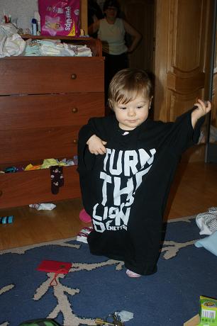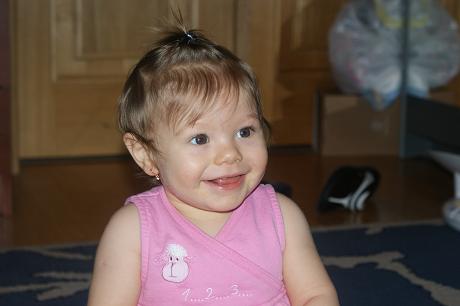Но читаю все . У нас есть новость - мы прокололи Эмилии ушки . Готова ловить помидорыот противников этого дела .Вот фотки: 1. Еще нет сережек, зато есть папина футболка (он надел, он и фотографировал) 2. Уже с сережками 3. Научилась сама залезать на горшок 4. Просто Эмилия |