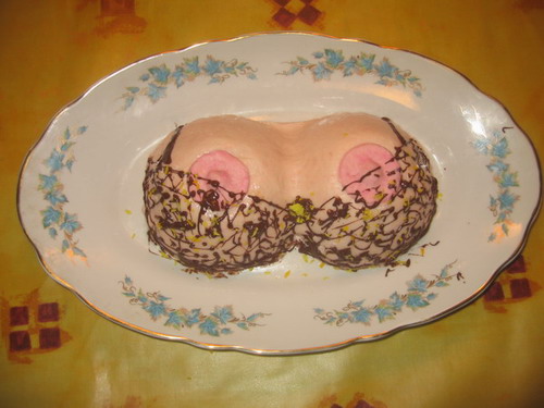 Хотя и не очень вкусно, внутри бисквит измельченный и перемешаный с варенкой, сверху мастика из розового шоколада и сах. пудры и шоколад... В следующий раз попробую другую начинку... благо этот топик вдохновляет![]() ПыСы А одна родственница среднего возраста обвинила меня в пошлости ![]() |