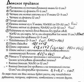 Там конечно и лишнее есть, что на мой взгляд вряд ли понадобится, но я буду на этот список ориентироваться - потому что там указано примерное оличество пеленок, распашонок на первое время.Если хотите, я попозже перепишу список и вывешу тут? ![]() |