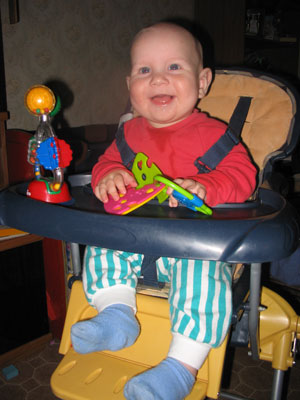Ура, у меня Саша в стульчике сидеть стал!!!! А то до этого плакал и кричал, уже не знала, что делать.