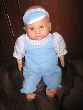 ![]() отвечаю на первый вопрос6 нам год и два будет 30, в кукол играем месяцев с восьми- качаем, припевая "аааа-аааа", кормим, спать укладываем. про шушу: расковыряла вчера вечером! звуки немеханические, как у обычных кукол со звуками. не фонтан, скажу я Вам: щечки краснеют- там внутри красные лампочки загораются, щеки ярко красным светятся - неестественно(мы с мужем , тормоза, думали резина краснеет- типа химическая р-ция д.б.) может, если б лампочки не такие яркие. было бы правдоподобнее. тело мягкое, ножки кривоваты... личико ничего так, посимпотичнее бебибона. при нажатии на пузо смеется, на область сердца- стучит сердечко. ложку не вытаскивали- не знаю, как чмокает лекарство. вцелом ничего так пупс, но этих денег (если за полную цену) он не стоит, мне кажется. доча, конечно, увидела, ((муж дико сердился, что раньше НГ открыла), но я надеюсь, она подзабудет- куклу спрятала, ) сразу обнимать ее, целовать, как Андрюшку своего любимого, стетоскоп скорее одевать (она это умеет, с настоящим играет) там есть еще в Ленте кукла в коробочке, тоже пупс, у нас похожий- он ничнем не уступает (он китайский)- смеется, плачет (надо на ручки и ножки нажимать), папа, мама говорит, гулит, бутылочку сосет- громко чмокает.( в бутылке что-то налито, "молоко" преливается) тело мягкое. дочка его просто обожает (нам год и два будет через неделю). очень качественно сделалн. стоит в ленте 400р с копейками. (нам бабушка за 300р купила в Пушкине) ну ничем этой шу-шу не уступает, ИМХО. если что- вот фото Андрюши: |
