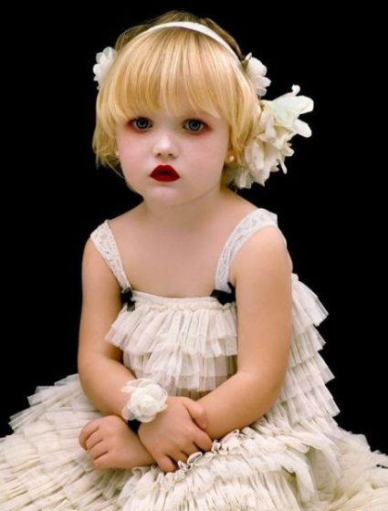 Я видела однажды по телевизору детский конкурс красоты среди девочек американский. Их там точно так же красили под взрослых женщин, тонны макияжа, взрослые прически и даже одевали специальные протезики -вставки на передние зубы, чтоб казались ровными и супер белыми.