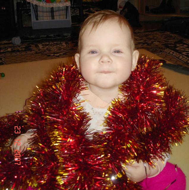 ![]() [ quote=styx;9330214]Приветы! Всех с маленькими праздничками! Давно я не показывалась. На работе жуткий аврал, а Демыч как назло сильно заболел. Уже чуть ли не месяц как болеет. Вначале была простуда, потом бронхит, потом бронхит с температурой 39, подозревали пневмонию, сделали снимок, снимок показал, что тока бронхит. Вот до сих пор кашляет.. но хоть температуры больше нету. Вот так ребенок ваще ничем не болел 10 месяцев, а тут такая пакость. А кто как квартиру украшает? У меня вот депрессия: раньше всегда покупали живую елку до потолка, а из-за маленького диверсанта пришлось ограничиться елочной гирляндой и прочими недоступными зловредным ручонкам висюльками ![/quote]Поправляйтесь скорее держим кулачки за вас@@@@@@@ Мы еще не украшали комнату, игрушки с мишурой достала до елки не дотянуться высоко висит, украшательством займемся наверно 30 когда у мужа будет выходной. Вот фото моей Дашули |