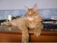 Мейн-куны были выведены более 100 лет назад как крупная, выносливая и красивая порода кошек, хорошо выживаемая в условиях суровых зим. Только наиболее выносливые особи с сильно развитой мускулатурой получили возможность участвовать в дальнейшем разведении. Мейн-куны развиваются медленно и достигают зрелости лишь к 4-5 годам. К этому возрасту вес самцов может достигать 15 кг, у самок - меньше. Это большие, нежные и добродушные гиганты. Даже голос выделяет их среди других кошек. Он имеет отчетливую яркую вибрацию. Мейн-куны редко мяукают, а лишь изредко нежно и коротко подают голос, что никак не соответствует их размерам. Важными отличительными чертами мейн-кунов являются форма головы, тела и текстура шерсти. Голова слегка вытянута больше в длину, чем в ширину, со слегка изогнутым профилем и высокими скулами, уши большие и широкие у основания, высоко посаженные, хорошо опушенные внутри. Кисточки на ушах, похожие на рысиные. Шея средней длины, тело длинное, грудь широкая. Хвост такой же длины, что и тело. Многие владельцы Мейн-кунов считают их идеальными домашними животными: внешность, похожая на клоунов, шерсть, не требующая ухода, преданная натура с забавными привычками и поведением, готовностью «помочь» в любой деятельности. Они составят отличную компанию для любой семьи, прекрасно уживаются с собаками и другими животными. Мэйнк - это удивительное животное, вызывающее уважение к себе. В нем поразительно сочетаются мощь и сила со сливочным характером, взгляд дикого зверя с нежным мурлыканьем. Это очень умное и благородное животное, красота которого радует нас, как все совершенное. Мейн-куны - подвижные животные. Они успевают все, всегда и везде: помочь приготовить вам обед, посмотреть телевизор, поиграть, побегать, поймать мышку (если вы ее купили для него, но она успела убежать), это неутомимые охотники, они прекрасно ловят мышей. Как и все крупные животные мэйн-куны должны иметь свободное пространство для движения. Им нравиться наблюдать за хозяевами с высоты. Порою кажется, что они знают о нас больше, чем мы думаем. О мейн-кунах можно рассказывать долго, но гораздо интереснее наблюдать за ними. Сейчас мейн-кунов в нашей стране очень мало, но хочется, чтобы как можно больше людей смогли оценить дикую красоту, благородство и душевные качества этих животных. Стандарт думаю не нужет, тк разберутся в написанном только фелинологи. Обявателям лучше смотреть на выставке, чтобы видеть РАЗНИЦУ ![]() |