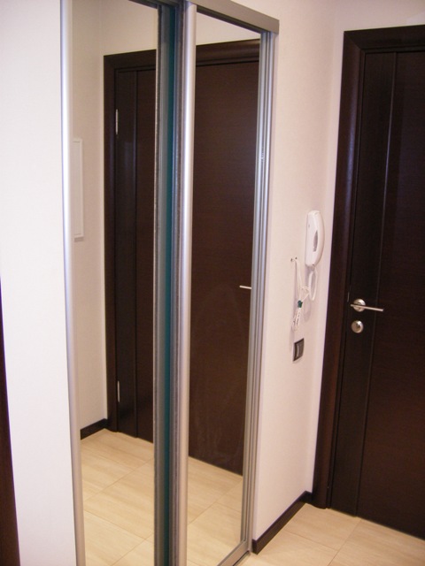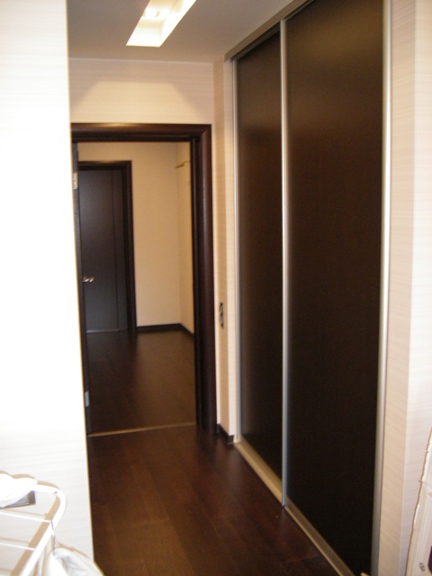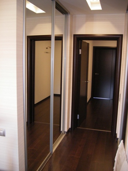 - Венге - это шкаф для обуви, там коробки обувные и всякая всячина. - За зеркальными дверями - гардеробная. Шкафы напротив друг друга. |