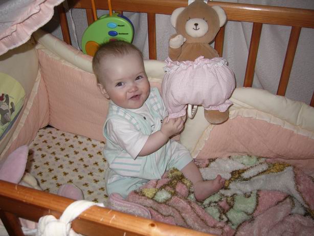 Хе... А мы вообще из кровати не обозреваем комнату, весят у нас и бортики. В кроватке мы только спим, играть и ползать отказываемся. Вот так вот.