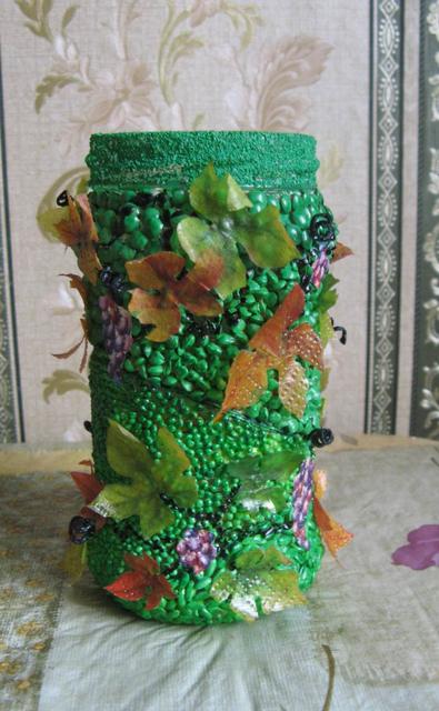 Какие хорошие работы! Мне особенно зеленая бутылочка нравится!И баночка, и зеленая вазочка....