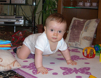 Давайте лучше в Германию. Она нам роднее. (о Финке я того же мнения )Я вот не могла бы жить за границей. Хотя мне там нра. А вот чтобы ребенок уехал - уже думала об этом. На счет криминала ничего не скажу, зато там убирают, и воздух чище, а у нас все засрано. Пардон Если вы психологически готовы, то конечно надо уезжать Обидно за родину, млин Девочки, я вчера так долго читала, но ничего написать не успела! И конечно уже половину забыла!! Алиса Танюшкина мне показалась на фотках похожа на Катю глазами. Обе красавицы Максимка Светика очаровашка И все-все детишки славные такие, уже не буду перечислять поименно И вообще много чего хотела написать, но все растеряла за день Во еще Даша меня поразила! Ань, видно, что девушка с характером! Крепышка Я нифига не успеваю. Только когда ко мне приходит мама или Федя спит на балконе. Готовлю по минимуму. Убирает муж. Глажу когда муж дома.Ноута нет , так что и до компа не всегда дохожу. Вообщем жить можно, но уже не так роскошно как до И еще у Феди новое умение. Он чуть что - орет как резаный до визга. Если лежит - так еще ногами бьет. Ну вы представляете Занимаюсь воспитанием с переменным успехом. Если выхожу из комнаты( "с таким орущим мама играть не будет, не хорошо Федя делает" - знатоки, можно так ребенку говорить? ) может затихнуть и заняться игрушками А если после прогулки или во время кормешки - не прекращает свои визги. Приходится брать на руки, успокаивать - сажать в стульчик и опять Воообщем проявляем Львиный характер. Критику понимает и не выносит, начинает ныть. Жду когда поймет, что до того как еда будет готова надо подождать Соседи от нас скоро съедут Итак, в 8 месяцев мы 70 см и 8900 кг. Имеем 2 нижних зуба. Изредка стоим на четвереньках. Перемещаемся переворотами и по-пластунски куда хотим. Хорошо сидим и играем сами. Хорошо ходим когда мама держит под ручки или опираясь на мамины ручки. Едим каши, пюре и творожок. Обожам мамино молоко. Но Не садимся сами. Не встаем сами. Не ползаем на четвереньках. Вообщем еще маленькие, хотя мама считает что уже достаточно большие, что совесть появилась Вот наш бузеныш. (техника пока не тронута ) |