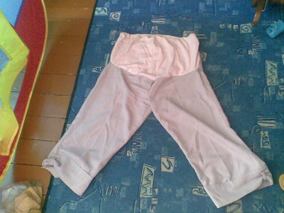 вот, нашла капри! их проще делать. все понятно. трикотажная вставка из футболки, только низом вверх, где отстрочка, там вставленна резинка, а то если самой отстрачивать то при растяжении оно рвется, тк ниток эластичных у меня нет. вот. эти намного удобней чел джинсы, но девченки на швейном форуме говорят, что в таких как джинсы удобно на бооольших сроках.