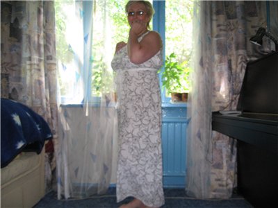 Вот, добралась до платья. Гладить не стала, оно все чумазое, потом постираю и поглажу. Просто покажусь. Больше, чем сфоткала, сфоткать не могла, фотик отключается, батарейки совсем сели.