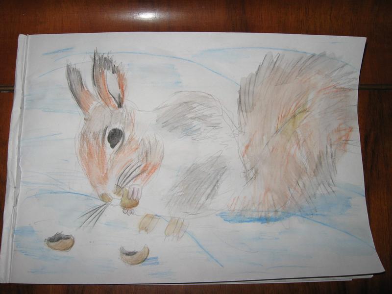 Настя, 7 с половиной, немножко занимается в школьной изостудии, рисунки домашние (чего-то больше найти ничего не могу) - белка и корабль - подглядывая в книжку