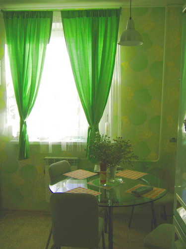 А что делать, если на кухне еще и вход на балкон? И сторона северная, следовательно, темновато в квартирке даже днем. Поэтому что-то совсем плотное вешать не хочется. А тюль уже надоел.